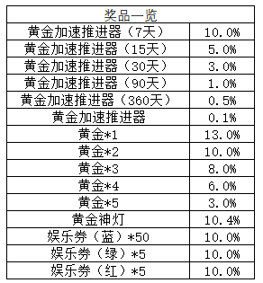 | 娱乐券x10 17.7% | 娱乐券x30 10% | 娱乐券x100 2% | 娱乐券x666 0.01% |